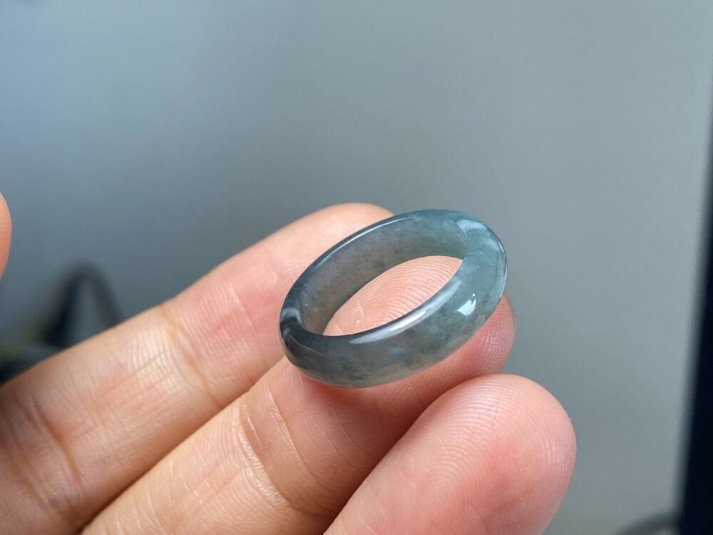 L163 氷種 小指 灰藍色 10.0号 天然 グアテマラ産 A貨 本翡翠 くりぬき リング