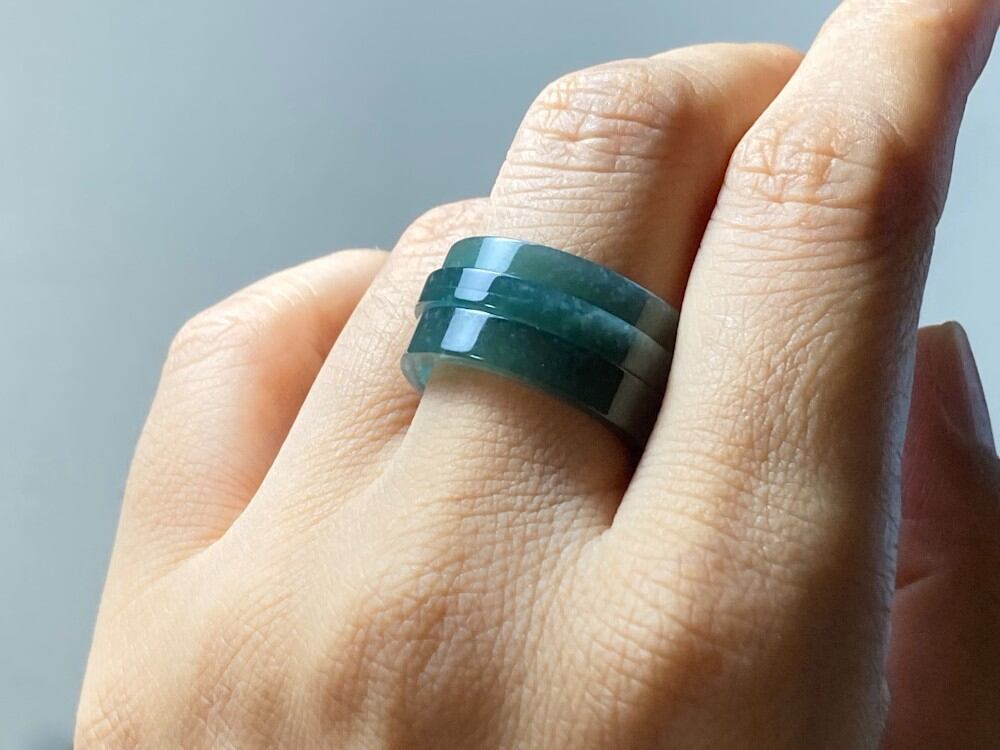 天然グアテマラ産 藍水 A貨 本翡翠 くりぬき リング