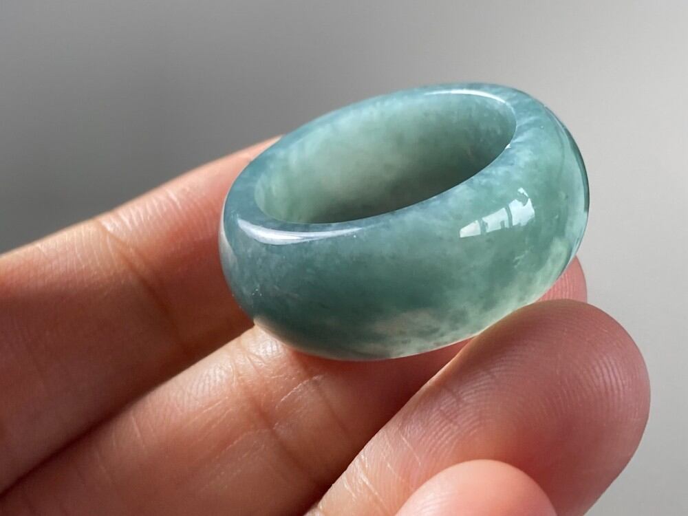 L203 氷糯種 藍水飄雪花 22.0号 天然 グアテマラ産 本翡翠 くりぬき 広幅 リング 板指