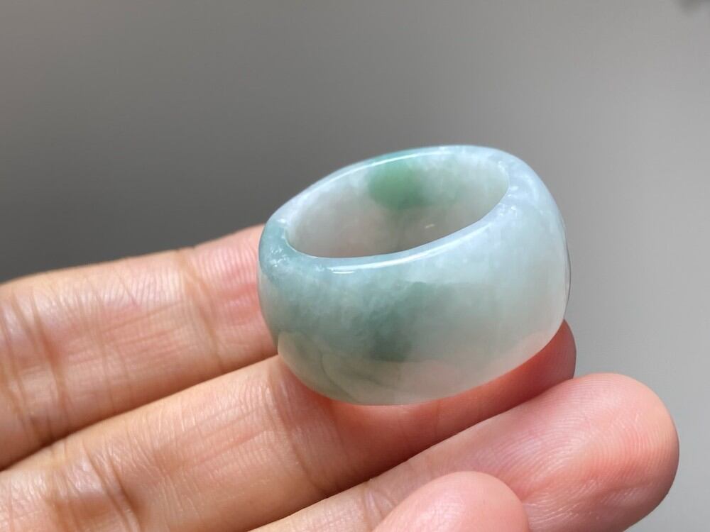 ARG23-114 白底飃藍緑花 21.5号 ミャンマー産 天然 本翡翠 広幅 リング くりぬき 指輪 硬玉