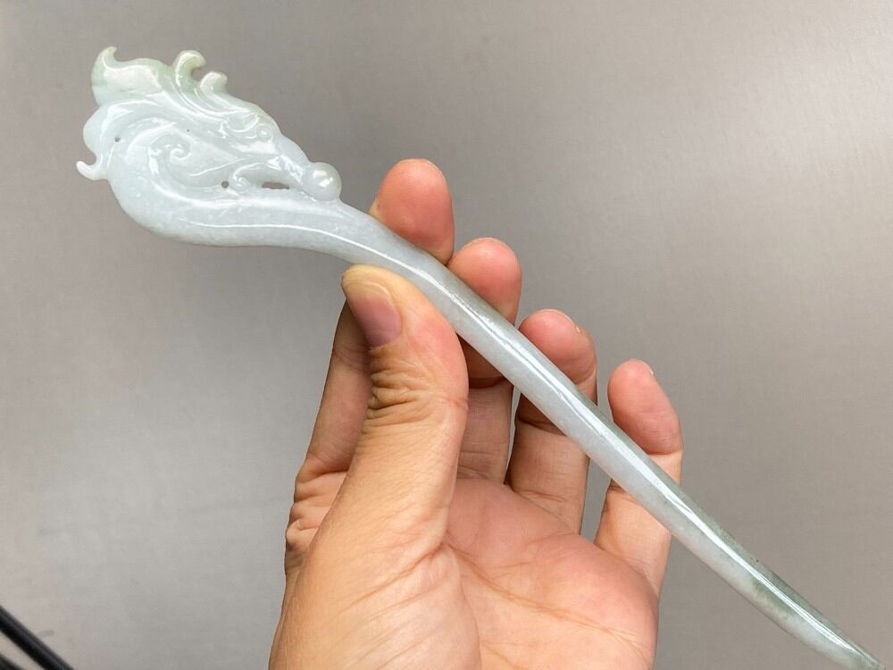 Z68 簪 ミャンマー産 天然 A貨 本翡翠 1本 簪 龍