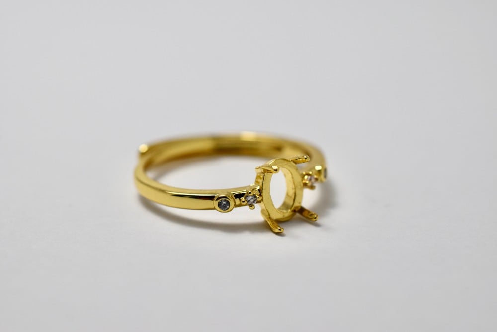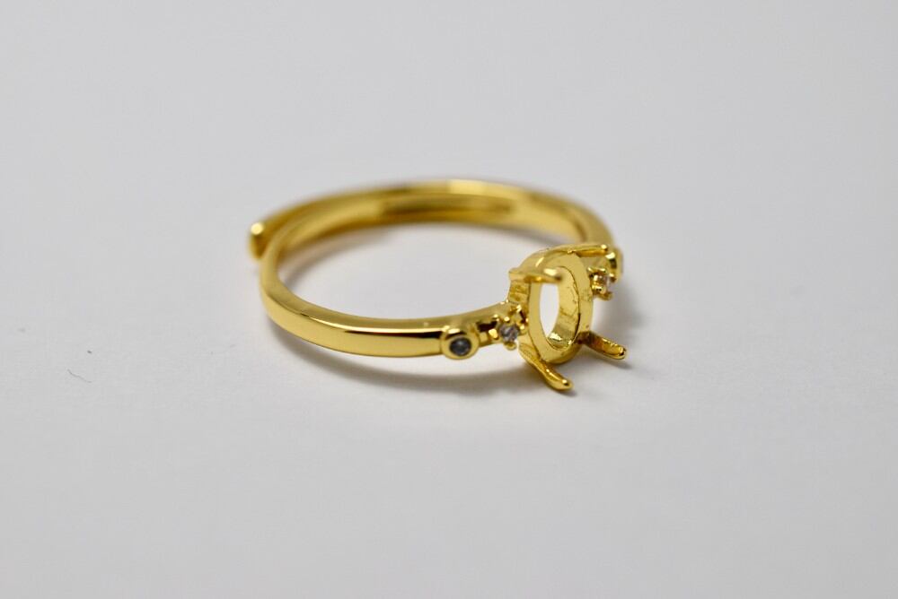 R30 台座 リング枠 指輪 空枠 石枠 縦置き 爪留め フリーサイズ 金属アレルギー対応 イエローゴールド