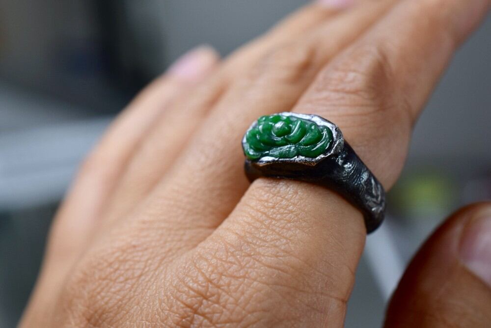 ARG23-137 手作り 一点物 シルバー 天然ミャンマー産 本翡翠 指輪 金属アレルギー対応