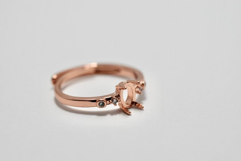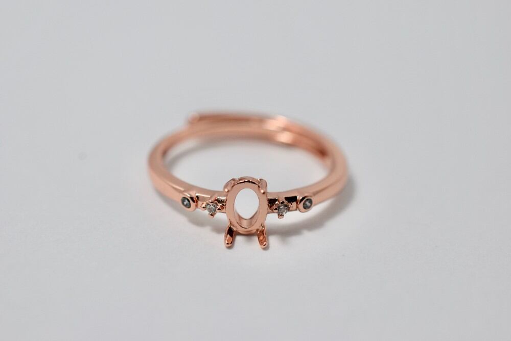 R34 ピンクゴールド 台座 リング枠 指輪 空枠 石枠 縦置き 爪留め フリーサイズ 金属アレルギー対応