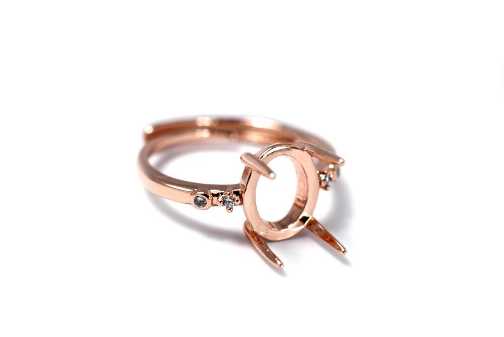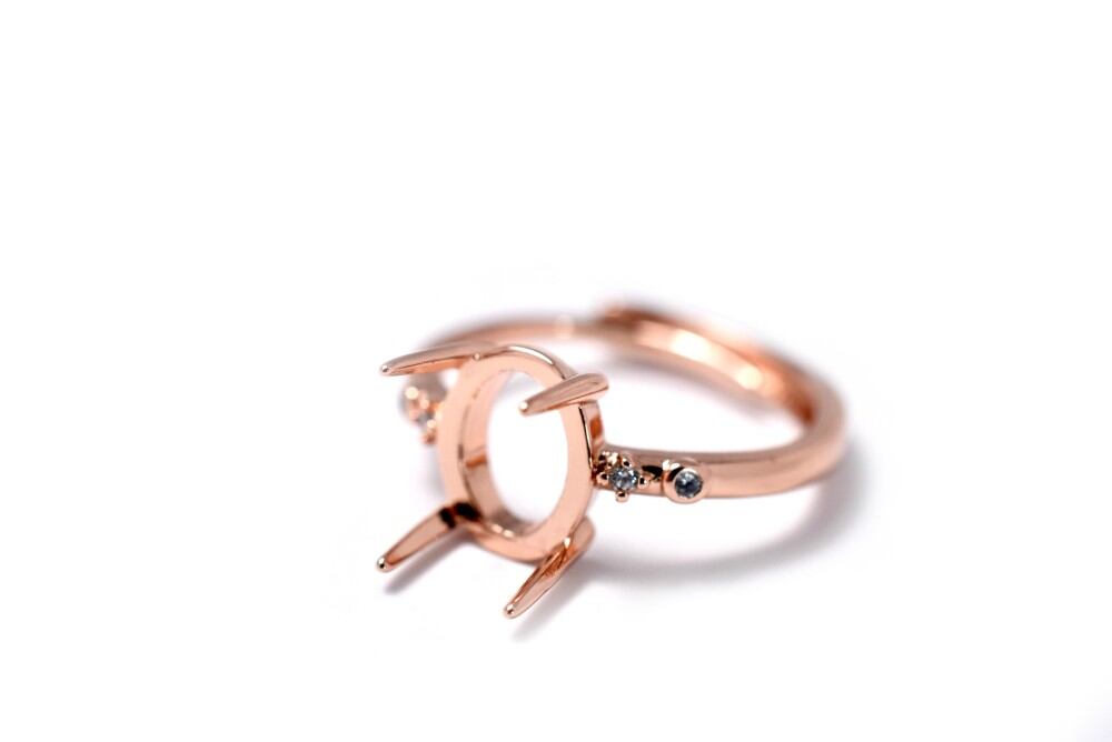 R38 ピンクゴールド 台座 リング枠 指輪 空枠 石枠 縦置き 爪留め フリーサイズ 金属アレルギー対応