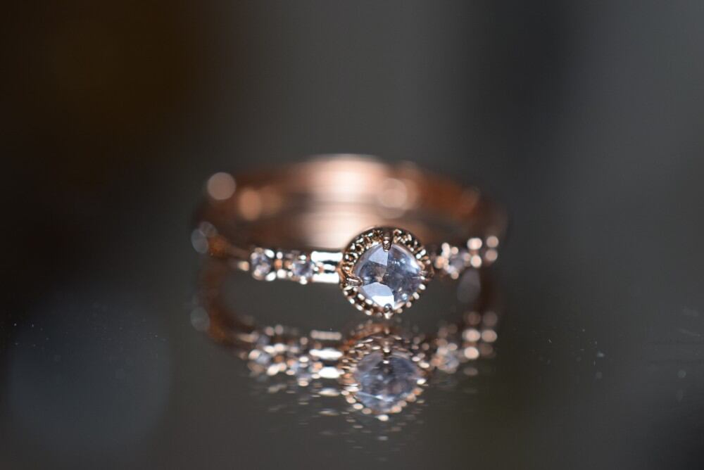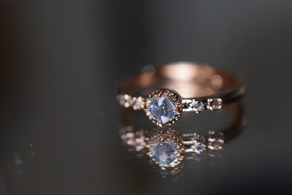 ☆晴れて青空の日の空の色のようなライトスカイブルースピネル、リング枠はピンクゴールド色、一点物です\(^o^)/☆