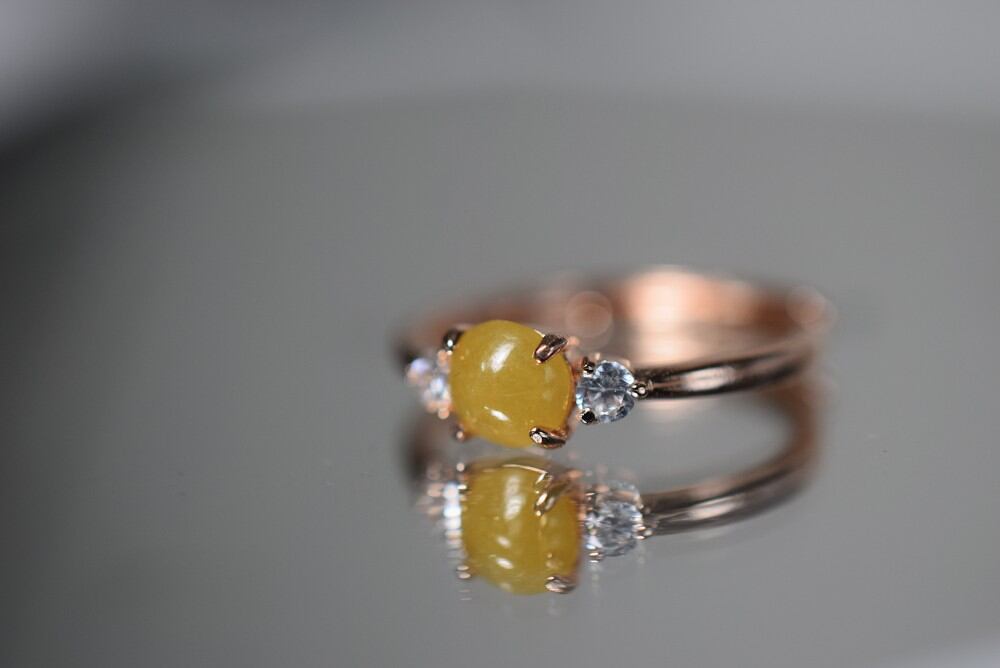 ☆ピンクゴールド色リング枠、黄翡翠、一点物です\(^o^)/☆