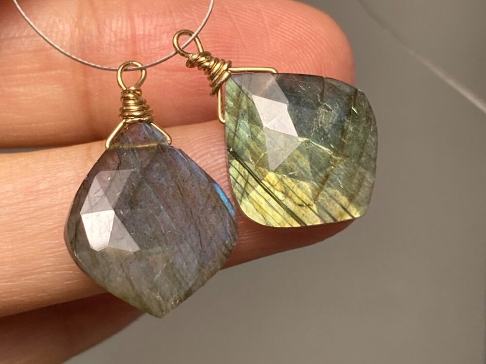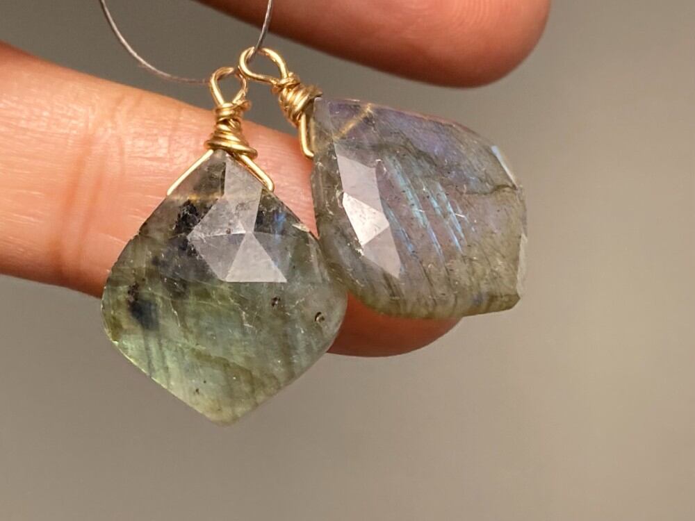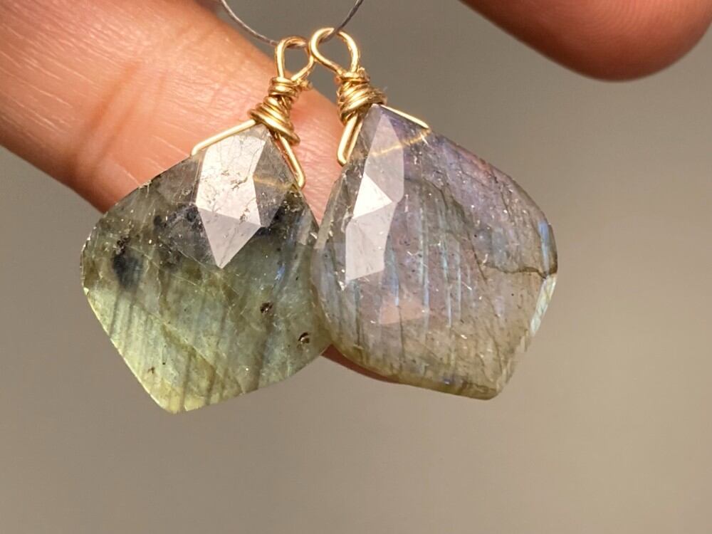XS23-51 上品 大粒 天然 ラブラドライト 淡青緑色 ピアス ルース 裸石 ピアス パーツ 横穴 ペンダント