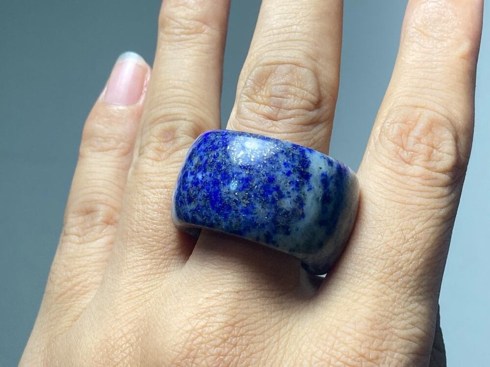 QJ174 広幅 28.5号 天然 ラピスラズリ 青金石 リング くりぬき 指輪