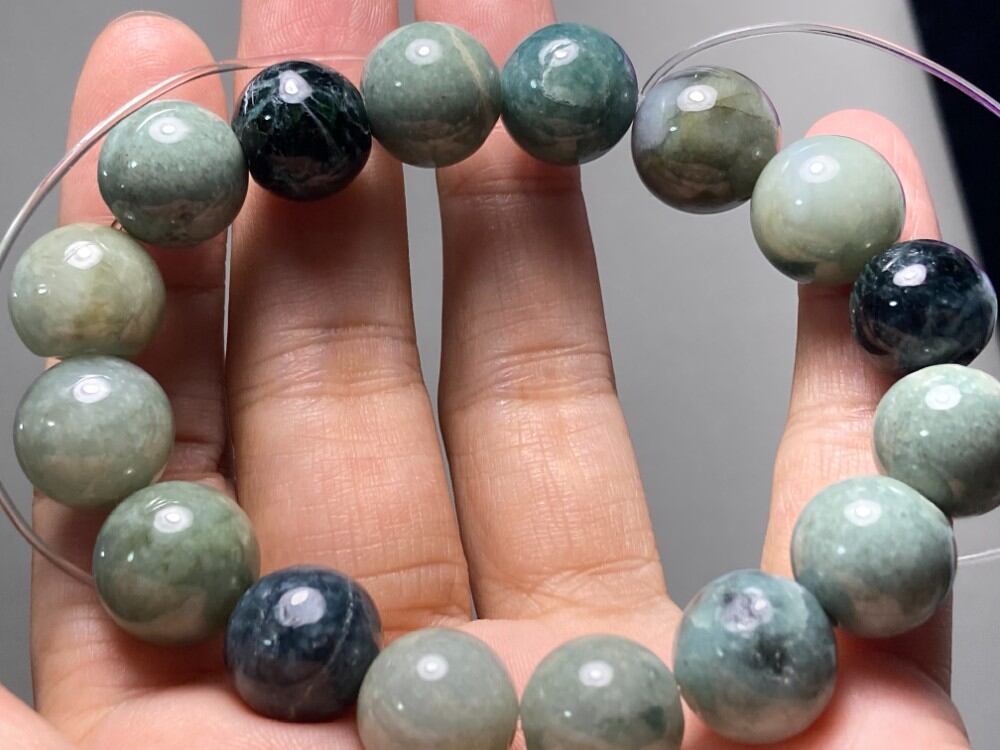 B23-62 訳あり処分品 大粒 12.5mm ミャンマー産 天然本翡翠 ブレスレット
