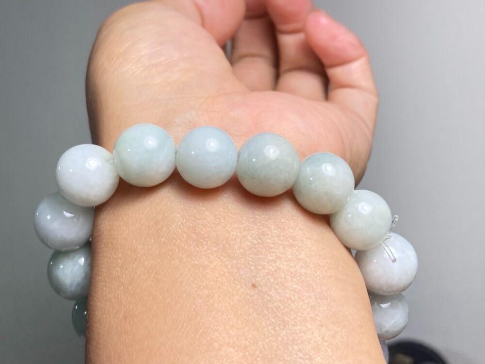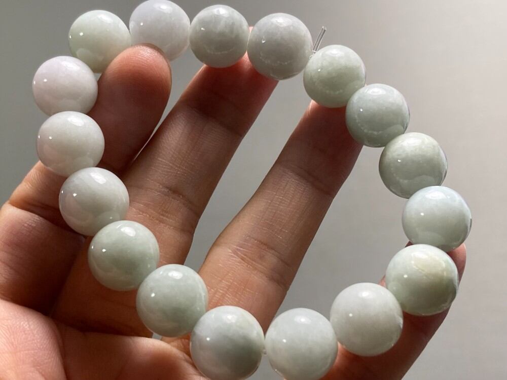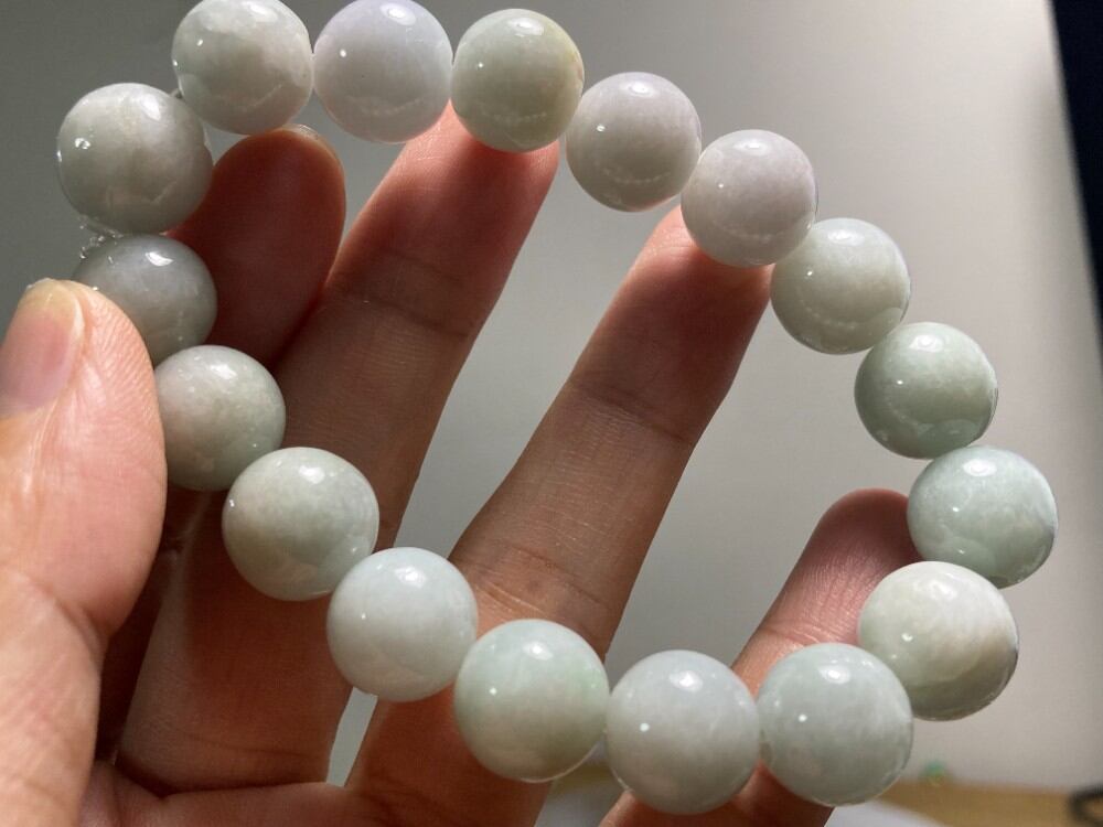 B23-60 大粒 12.5mm ミャンマー産 天然本翡翠 ブレスレット