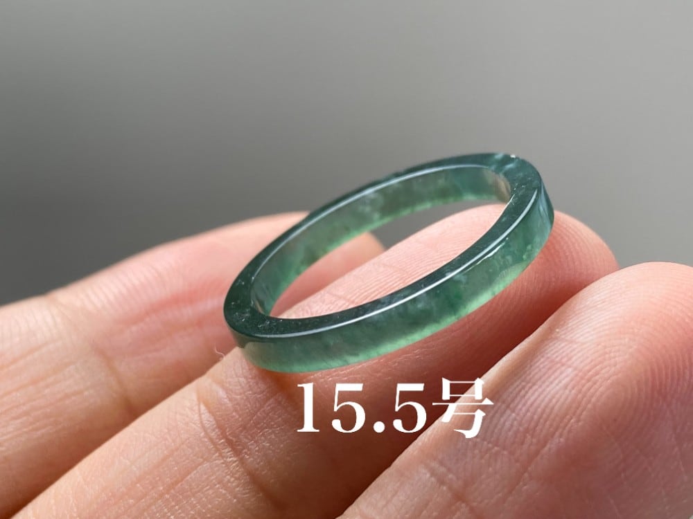 L23-111 氷種 青色 細身 15.5号 天然 グアテマラ産 A貨 本翡翠 くりぬき リング