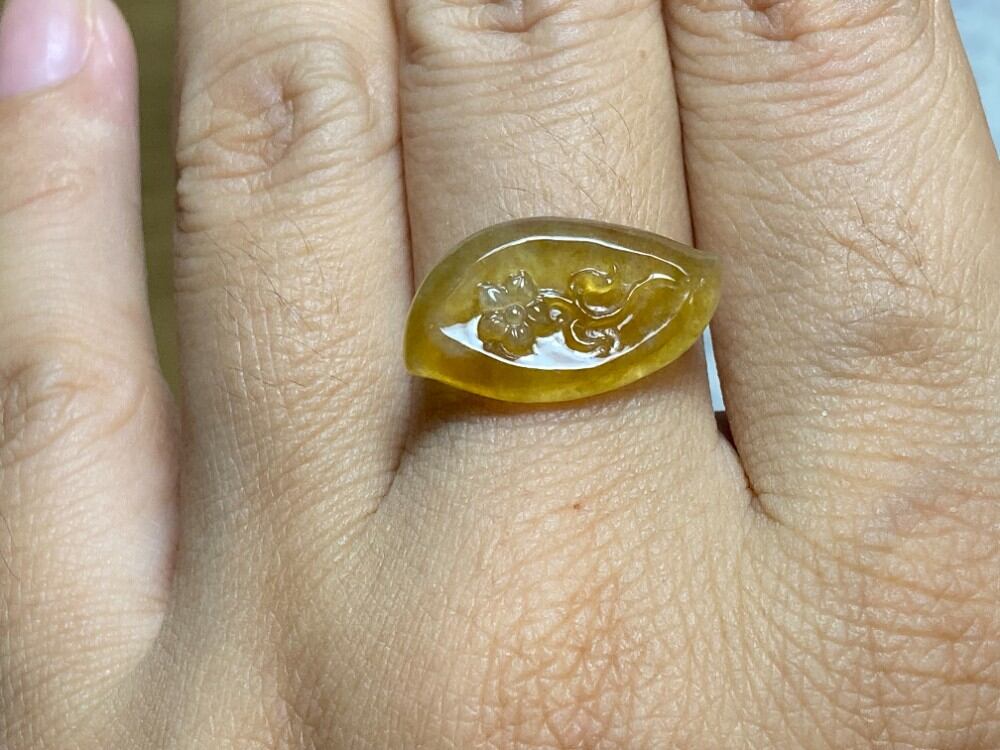 R23-149 上質 氷種 飴色 手彫り花 ミャンマー産 天然 A貨 本翡翠 ルース 硬玉 ジェダイト