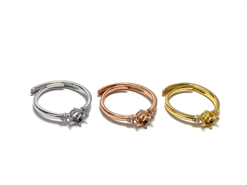 R43 上品 ファセット ラウンドカット 台座 リング枠 ルース 裸石 天然石 指輪 空枠 石枠 爪留め フリーサイズ