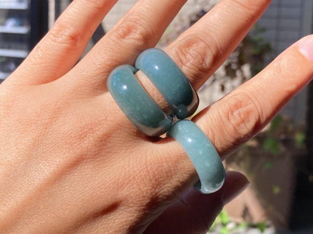 天然グアテマラ産 藍水 A貨 本翡翠 くりぬき リング