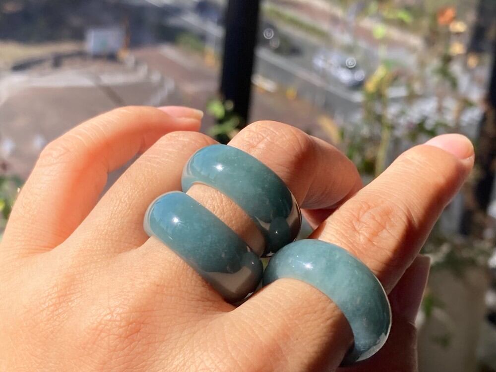 天然グアテマラ産 藍水 A貨 本翡翠 くりぬき リング