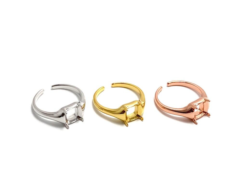 RG48 上品 空枠 ミニ ファセット 台座 リング枠 ルース 裸石 天然石 指輪 石枠 爪留め フリーサイズ