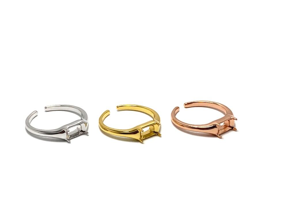 RG49 上品 3.2x5.6~3.3x5.8mm 空枠 ミニ ファセット ラウンドカット 台座 四角形 長方形 リング枠 ルース 裸石 天然石 指輪 石枠 爪留め フリーサイズ