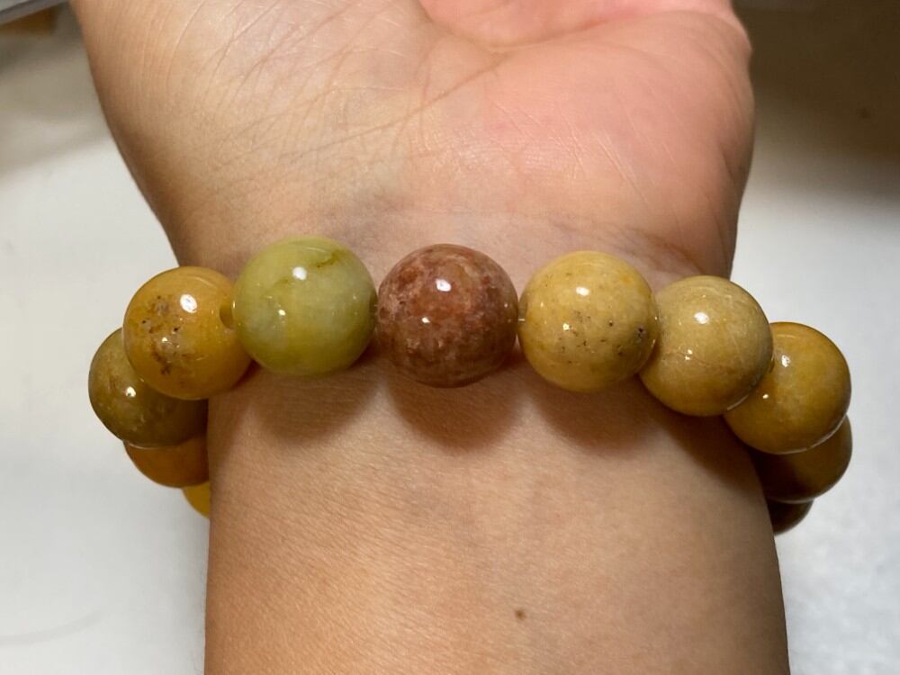 B23-69 大粒 黄翡翠 12.5mm ミャンマー産 天然本翡翠 ブレスレット