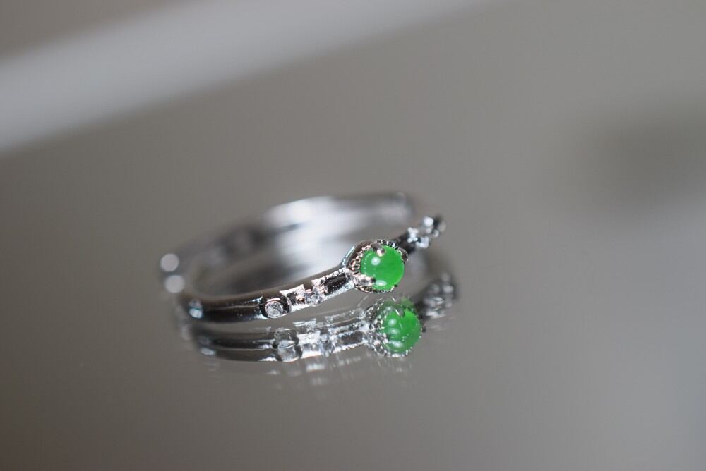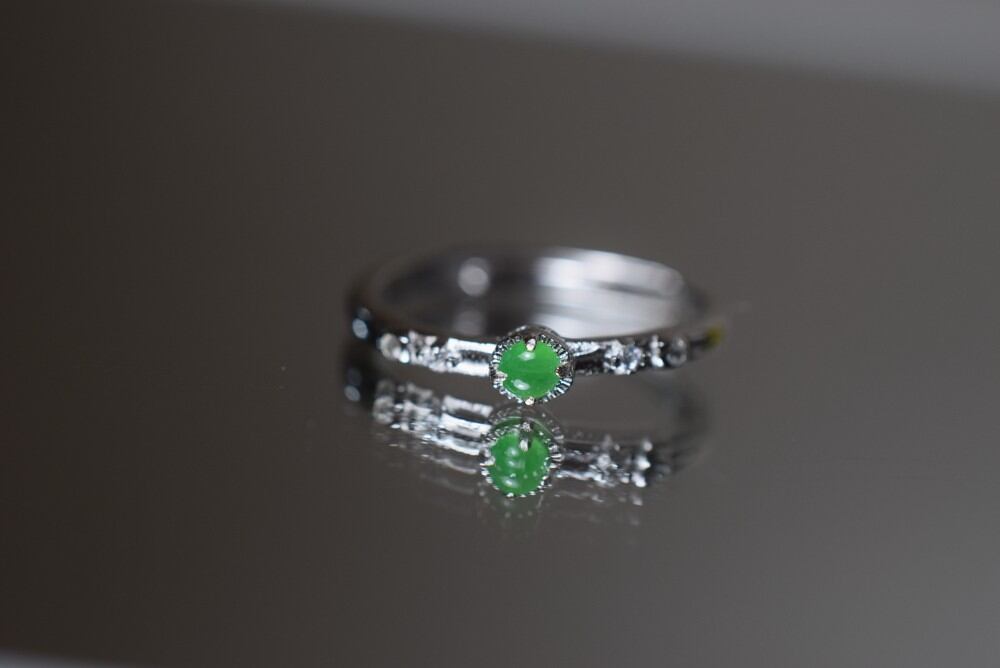 SR3-100 シルバー 氷種 陽緑 ミニ ミャンマー産 天然 本翡翠 リング 指輪 シンプル フリーサイズ 金属アレルギー対応