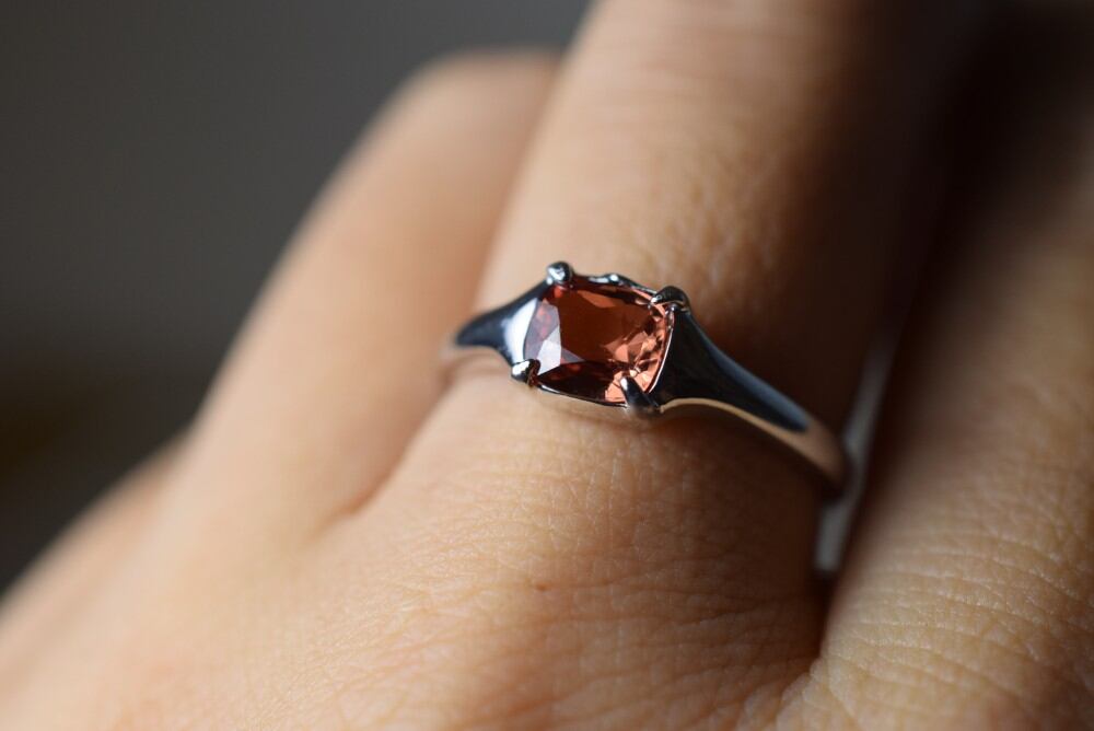 SR3-104 シルバー 宝石質 天然 明るい赭色 スピネル ミャンマー産 リング 指輪 シンプル フリーサイズ