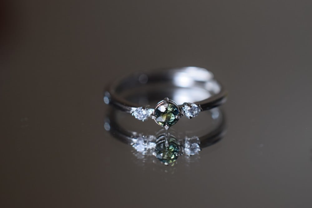 SR3-107 天然 バイ色 サファイア リング 指輪 シンプル フリーサイズ 18KGP 金属アレルギー対応