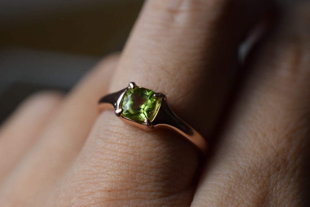 SR3-110 宝石質 天然 ペリドット リング 指輪 シンプル フリーサイズ 金属アレルギー対応