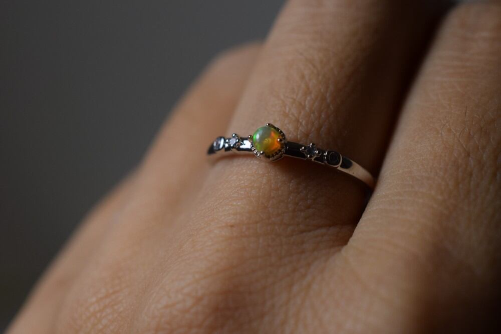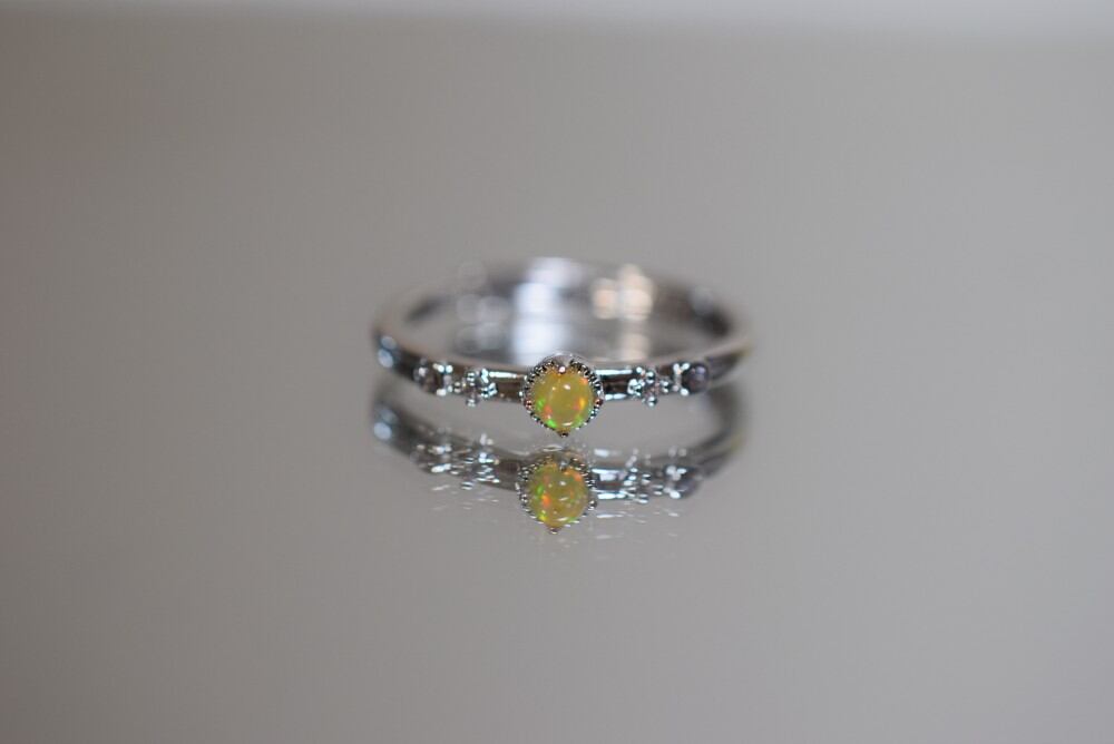 SR3-111 宝石質 ミニ 天然 オパール リング 指輪 シンプル フリーサイズ 金属アレルギー対応