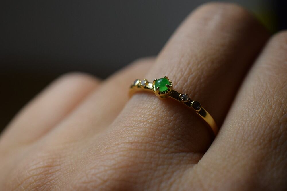 SR3-149 ミニ 氷種 陽緑 ミャンマー産 天然 本翡翠 リング 指輪 フリーサイズ 金属アレルギー対応