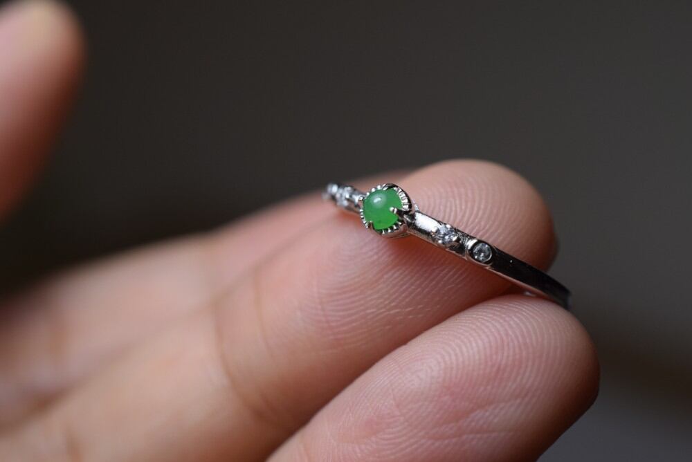 SR3-155 シルバー ミニ 陽緑 ミャンマー産 天然 本翡翠 リング 指輪 フリーサイズ 金属アレルギー対応