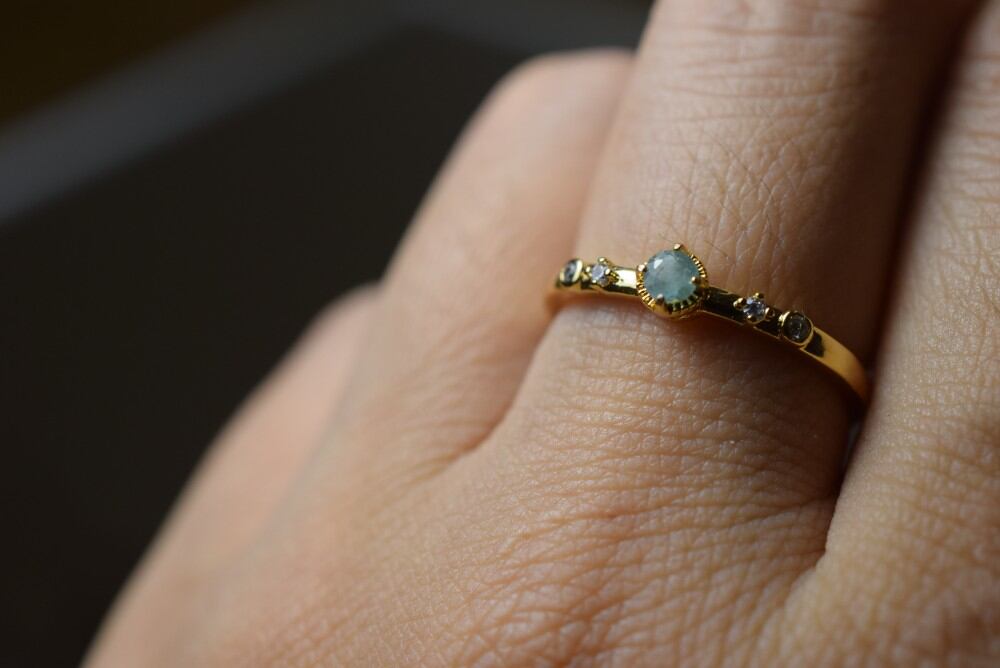 SR3-157 浅縹色 天然 トルマリン リング 指輪 フリーサイズ 金属アレルギー対応