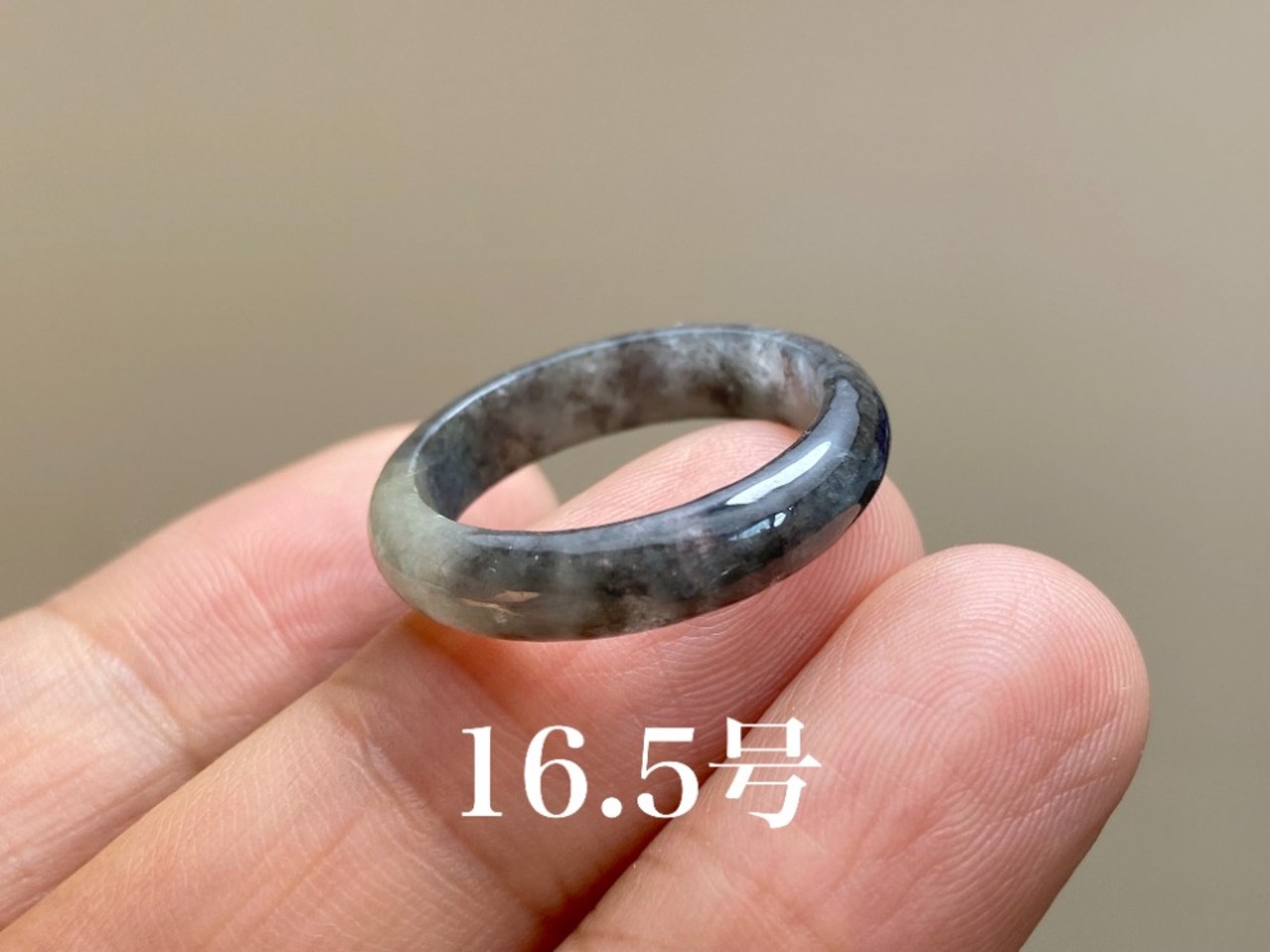 L4-65 美品 黒翡翠 16.5号 ミャンマー産天然 A貨 本翡翠 くりぬき リング