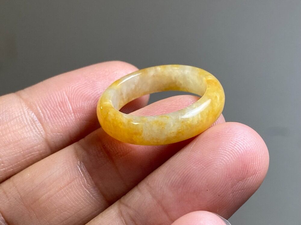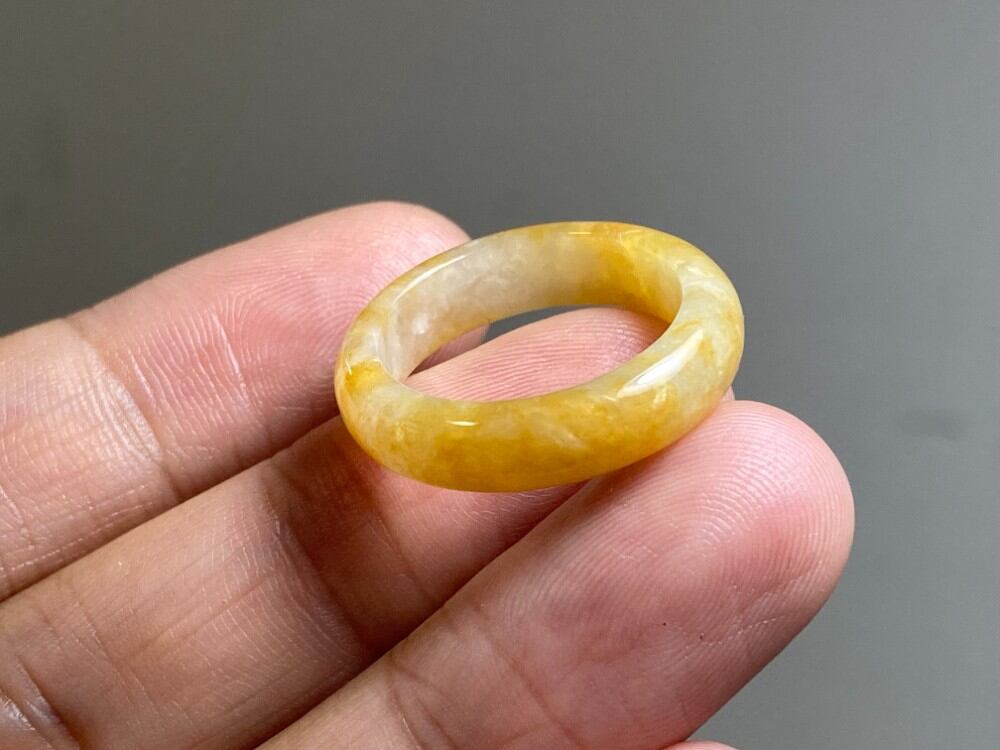 L4-89 上品 黄翡翠 14.0号 ミャンマー産天然 A貨 本翡翠 くりぬき リング