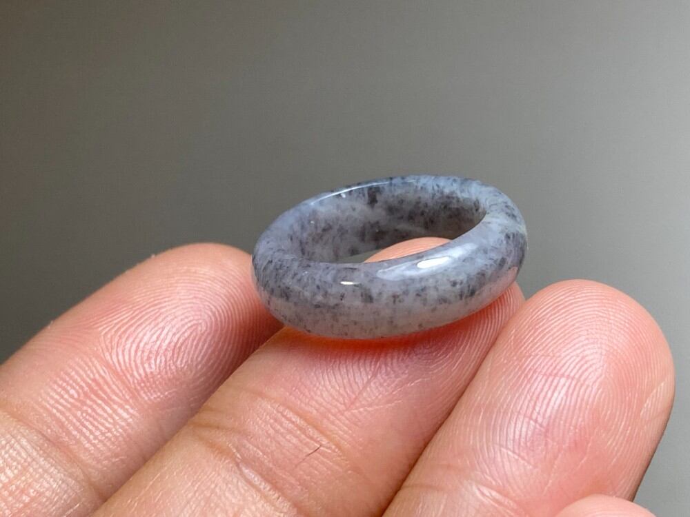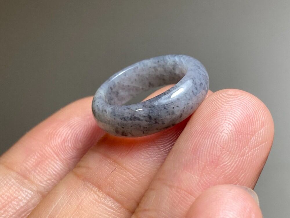 L4-119 美品 グレー 7.0号 ミャンマー産天然 A貨 本翡翠 くりぬき リング