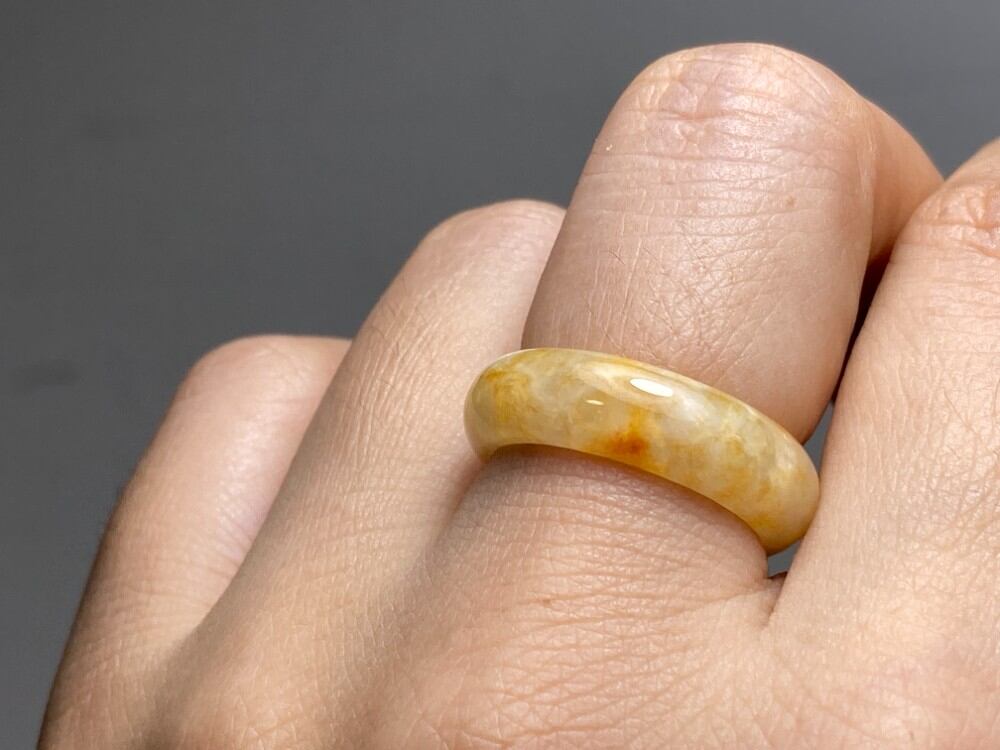 L4-143 上品 黄翡翠 14.0号 ミャンマー産天然 A貨 本翡翠 くりぬき リング
