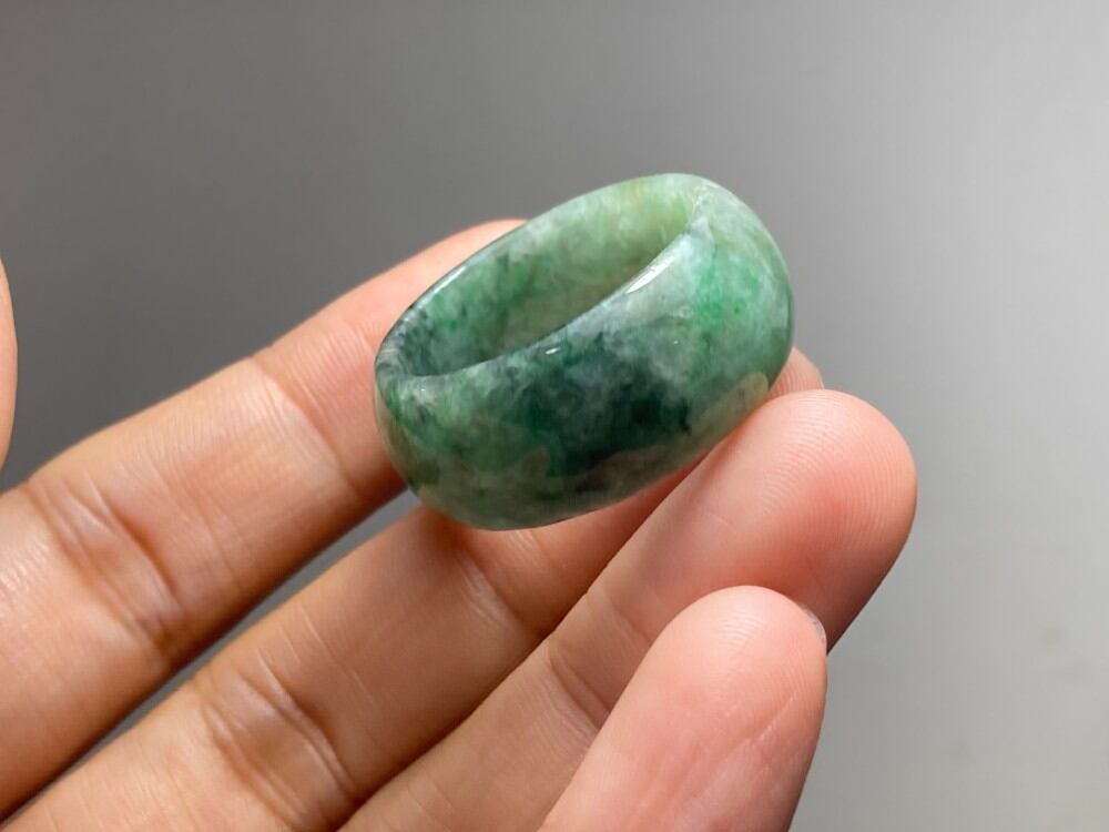 L4-157 ビッグサイズ 花緑 29.5号 ミャンマー産天然 A貨 本翡翠 くりぬき リング
