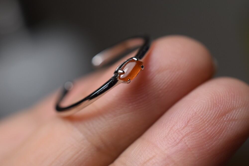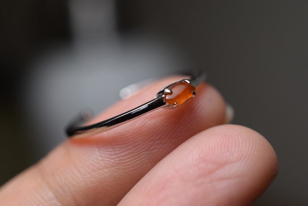 SR4-70 シルバー 氷種 赤橙 ミニ 〜形 ミャンマー産 天然 マーキス 赤翡翠 リング 指輪 フリーサイズ 金属アレルギー対応