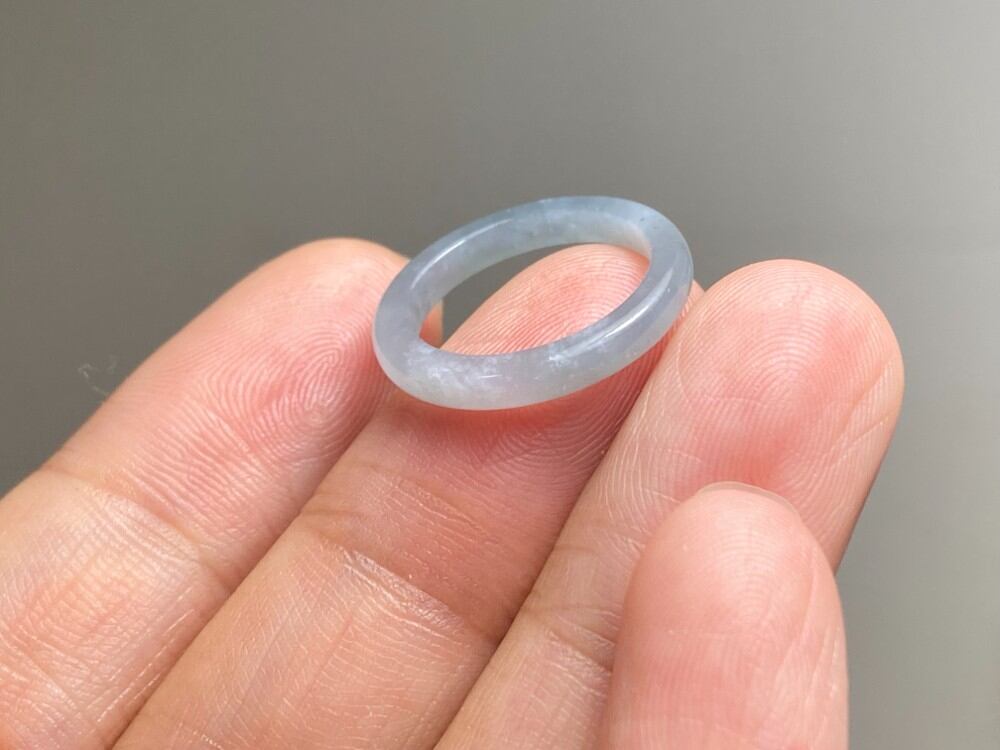 L4-164 小指 薄青 6.0号 天然グアテマラ産 A貨 本翡翠 くりぬき リング
