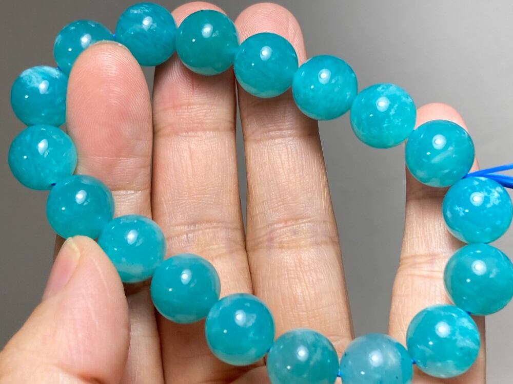 BR04 天然 アマゾナイト 天河石 てんがせき ペルー産 ラウンド約11~12mm ブレスレット Amazonite