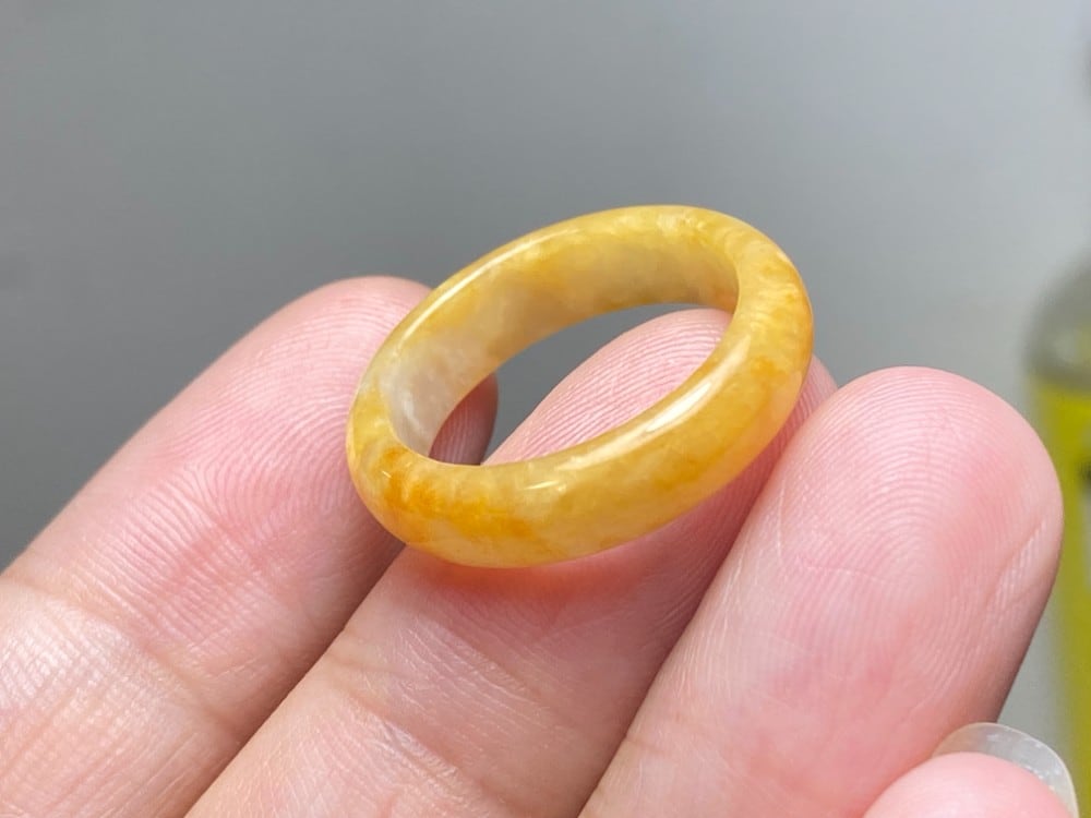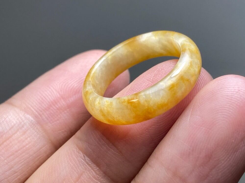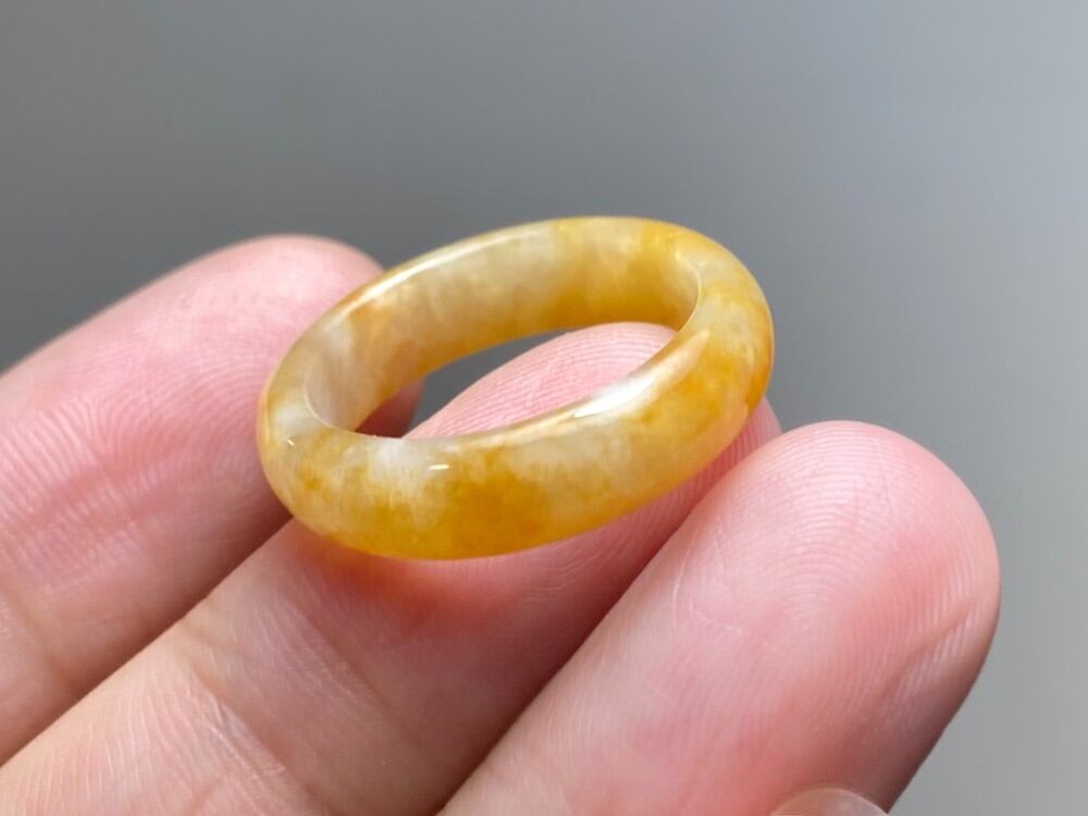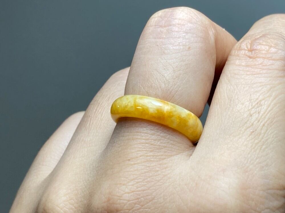 L5-63 上品 黄翡翠 14.0号 ミャンマー産天然 A貨 本翡翠 くりぬき リング