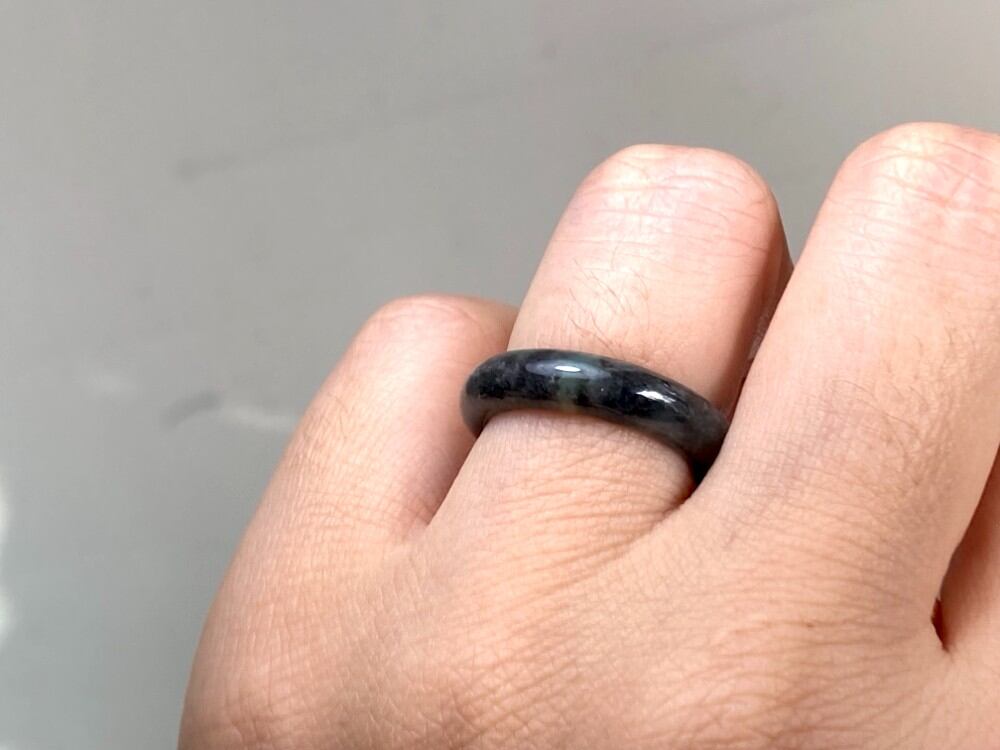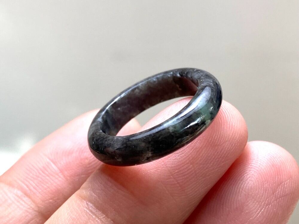 L5-89 美品 黒翡翠 10.5号 ミャンマー産天然 A貨 本翡翠 くりぬき リング