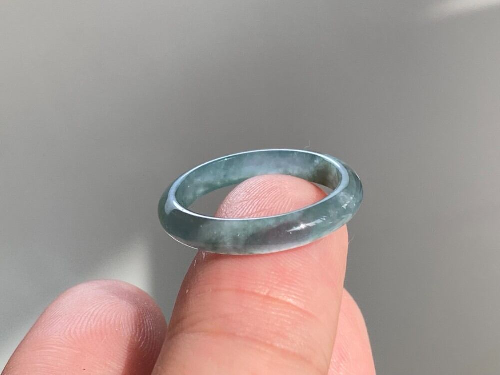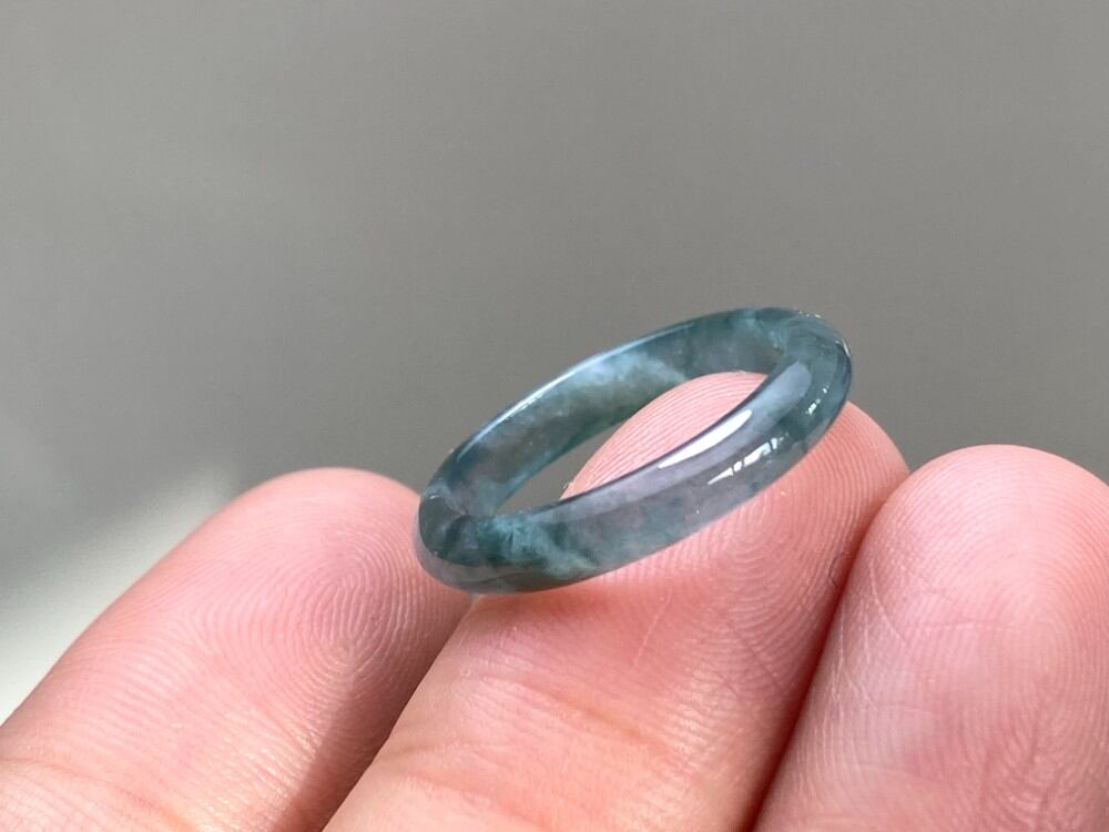 L5-93 細身 氷灰藍色 10.5号 天然グアテマラ産 A貨 本翡翠 くりぬき リング