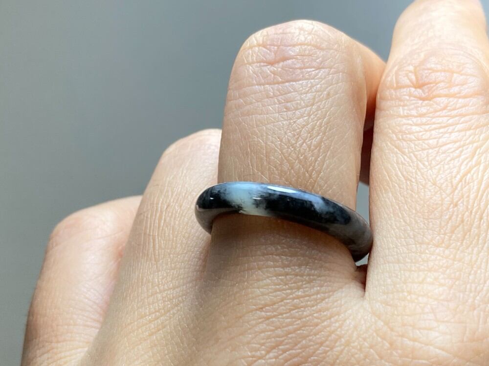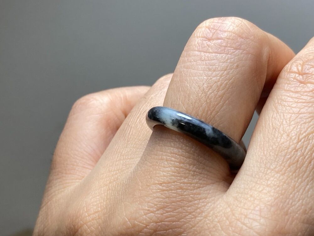 L5-123 美品 黒翡翠 17.5号 ミャンマー産天然 A貨 本翡翠 くりぬき リング