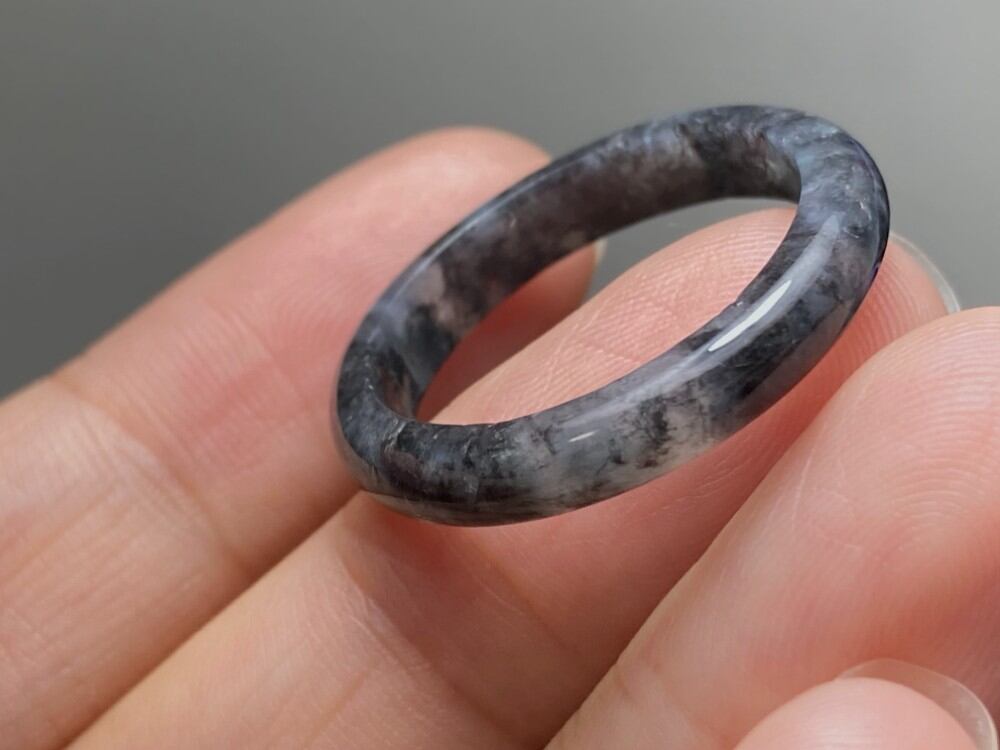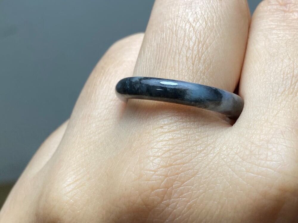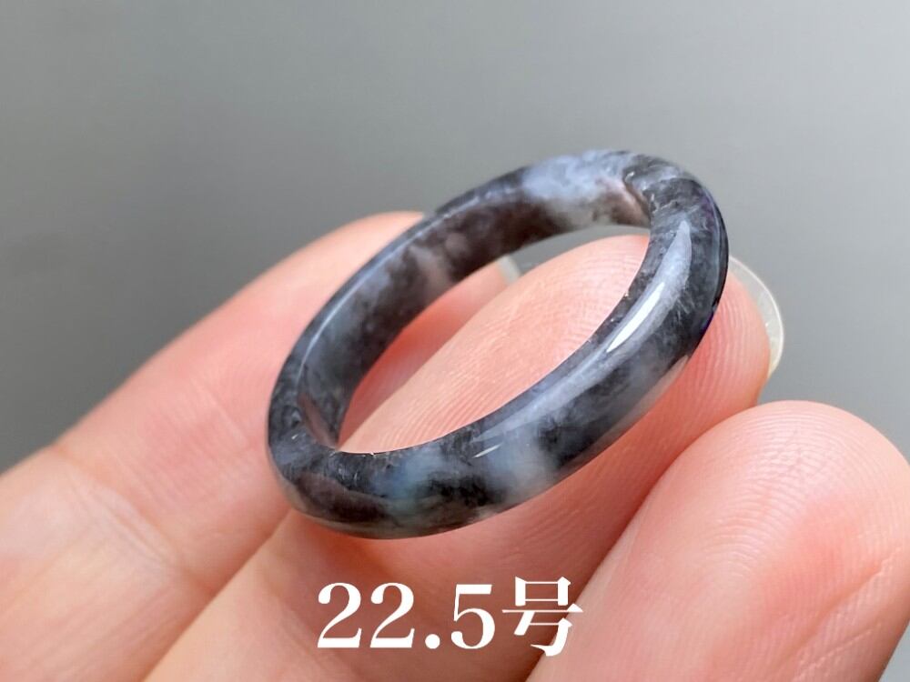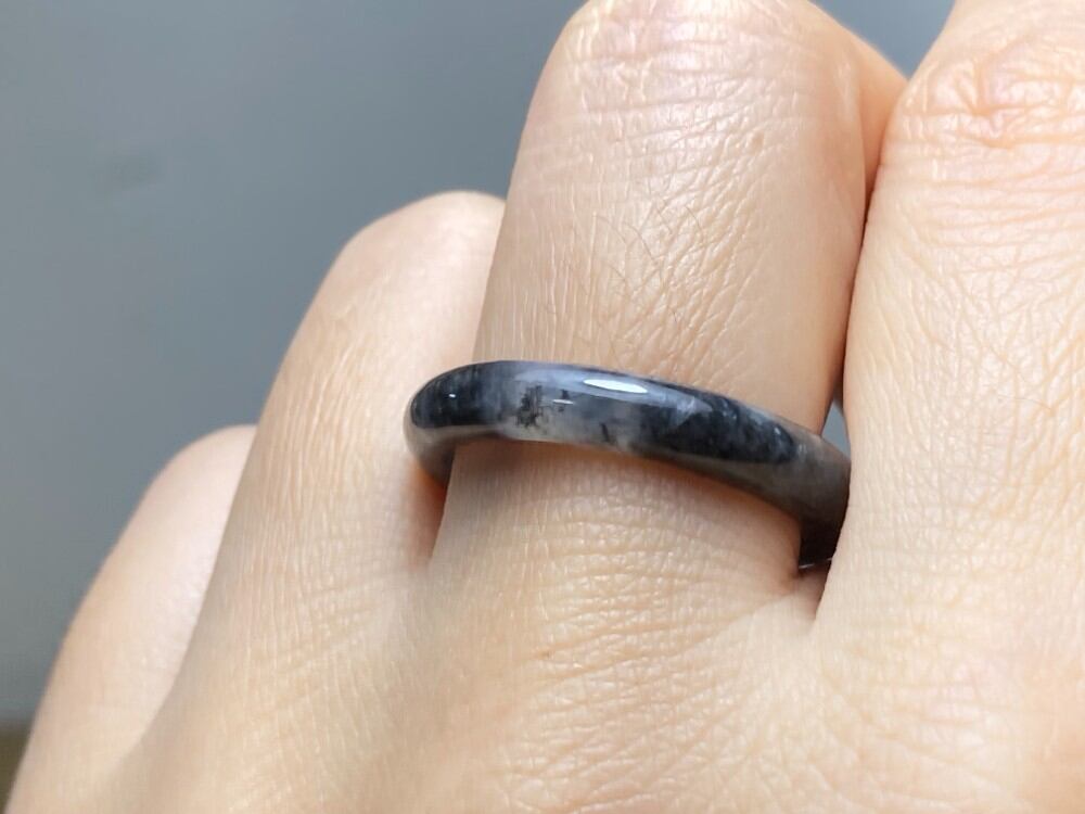 L5-142 美品 黒翡翠 22.5号 ミャンマー産天然 A貨 本翡翠 くりぬき リング