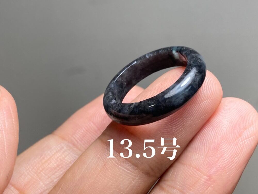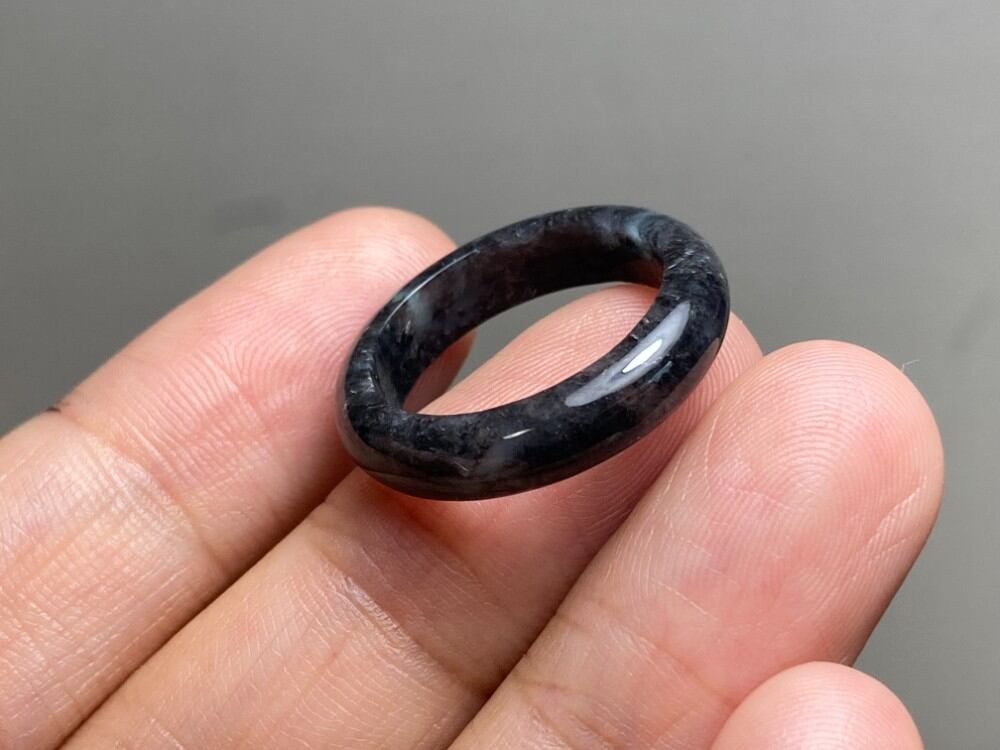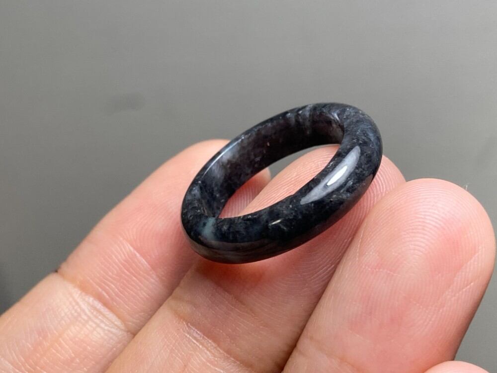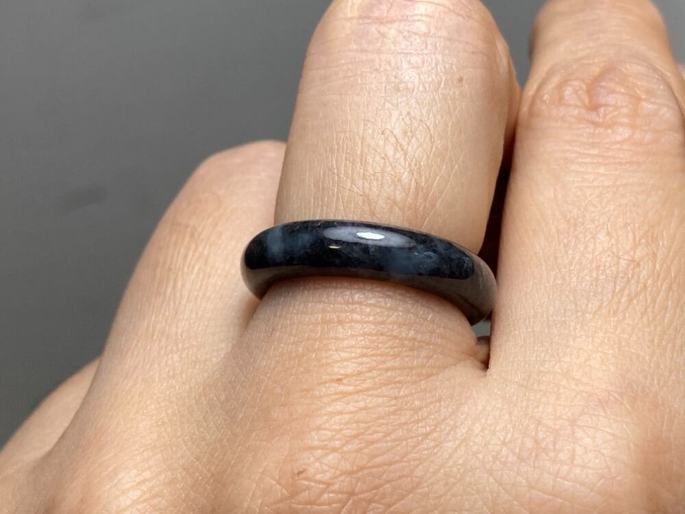 L5-172 美品 黒翡翠 13.5号 ミャンマー産天然 A貨 本翡翠 くりぬき リング