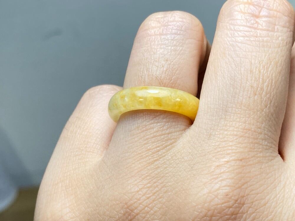 L5-177 訳あり処分品 黄翡翠 11.5号 ミャンマー産天然 A貨 本翡翠 くりぬき リング