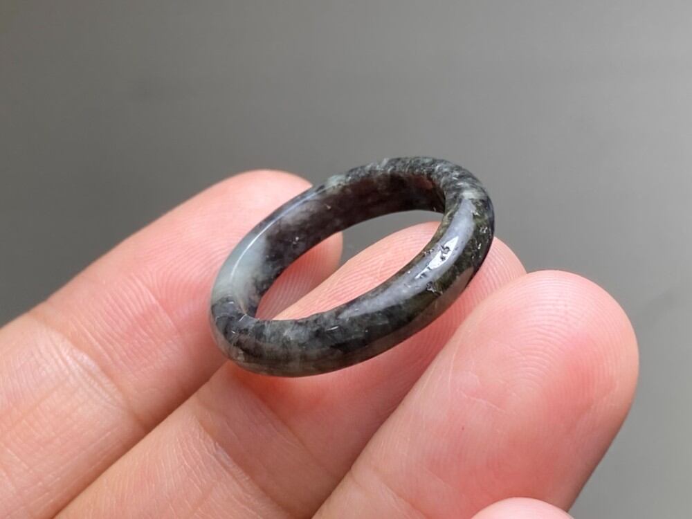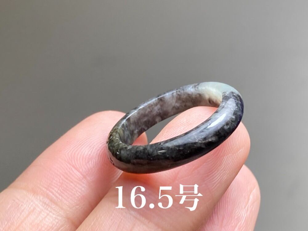 L5-186 特売 黒翡翠 16.5号 ミャンマー産天然 A貨 本翡翠 くりぬき リング