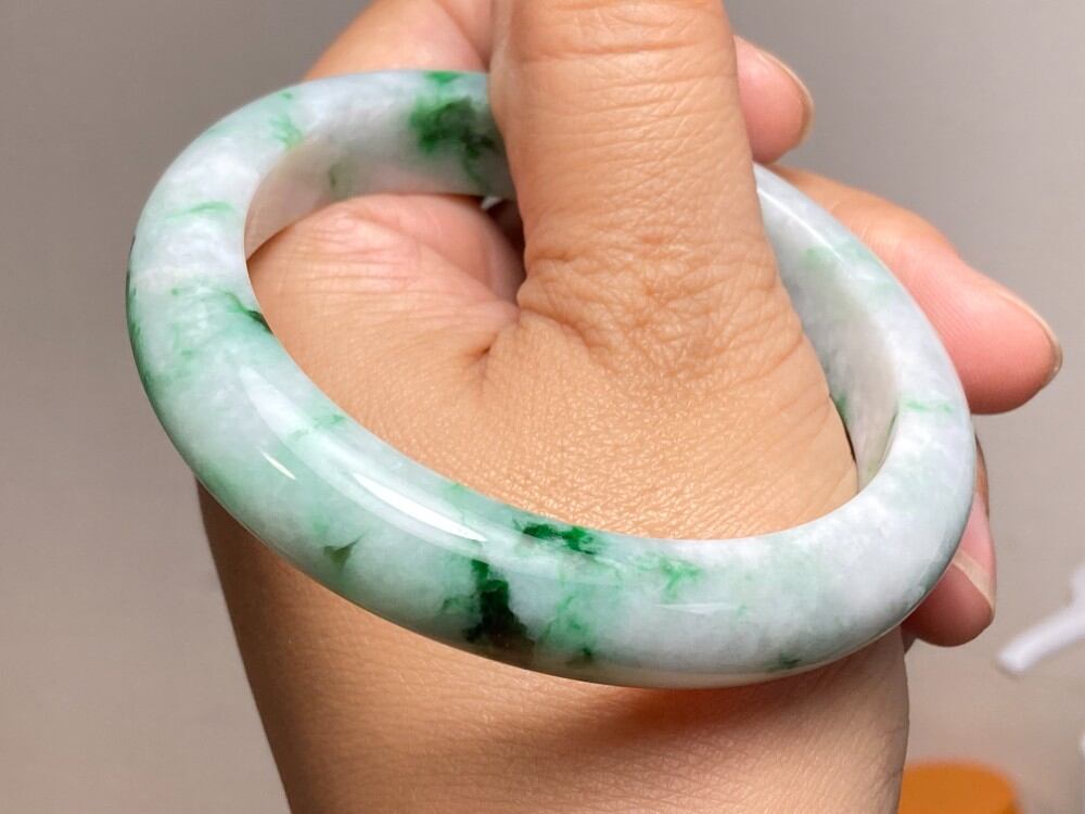 BG5-3 美品 花緑 55.8MM 真ん丸 ミャンマー産 天然本翡翠 バングル