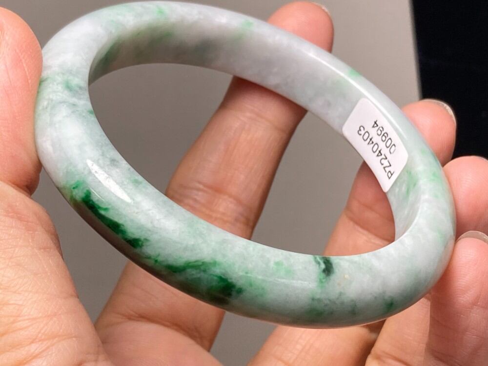 BG5-6 美品 花緑 56.2MM 真ん丸 ミャンマー産 天然本翡翠 バングル