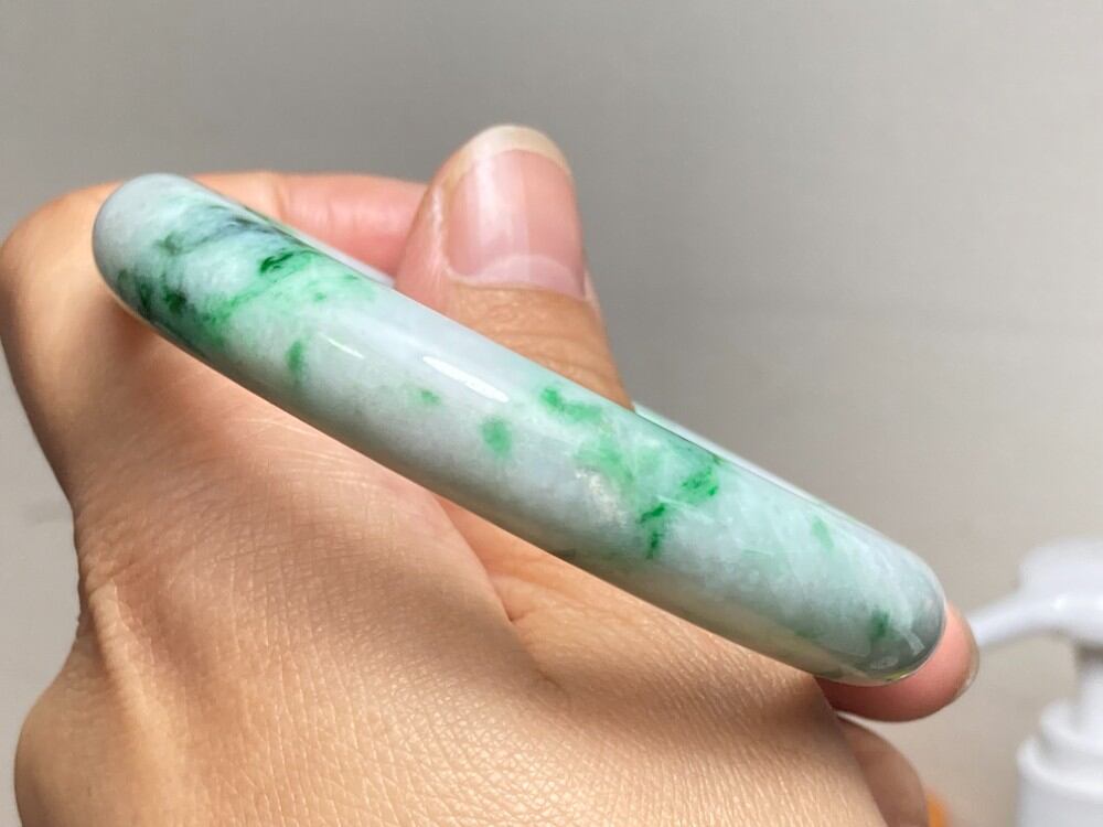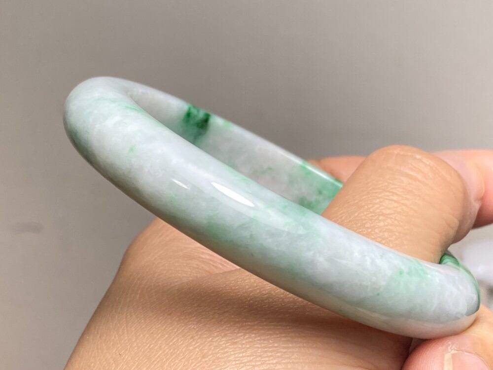 BG5-4 美品 花緑 56.0MM 真ん丸 ミャンマー産 天然本翡翠 バングル